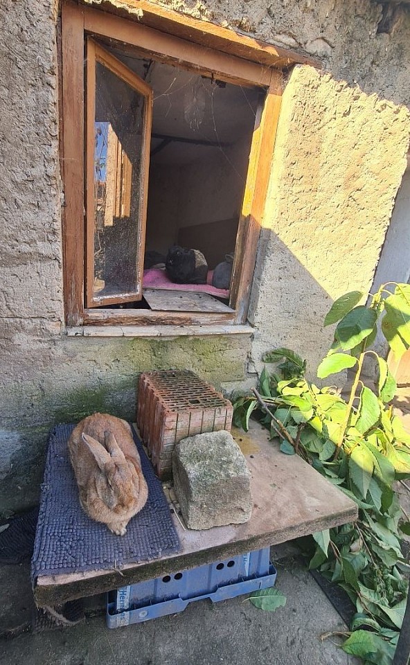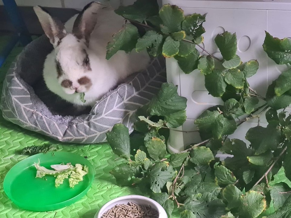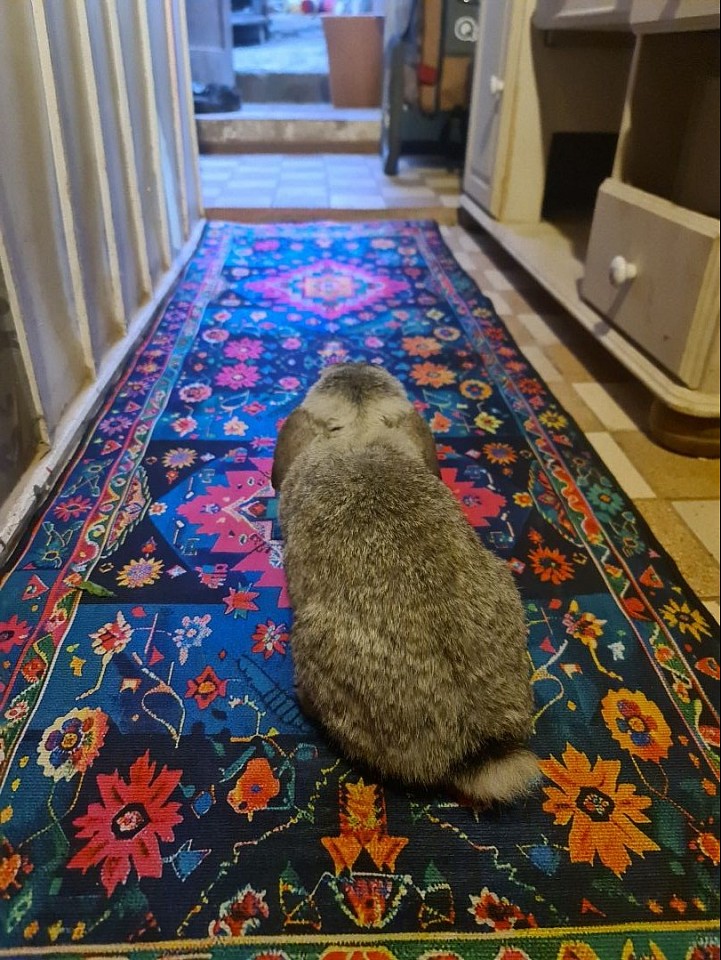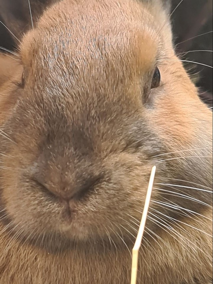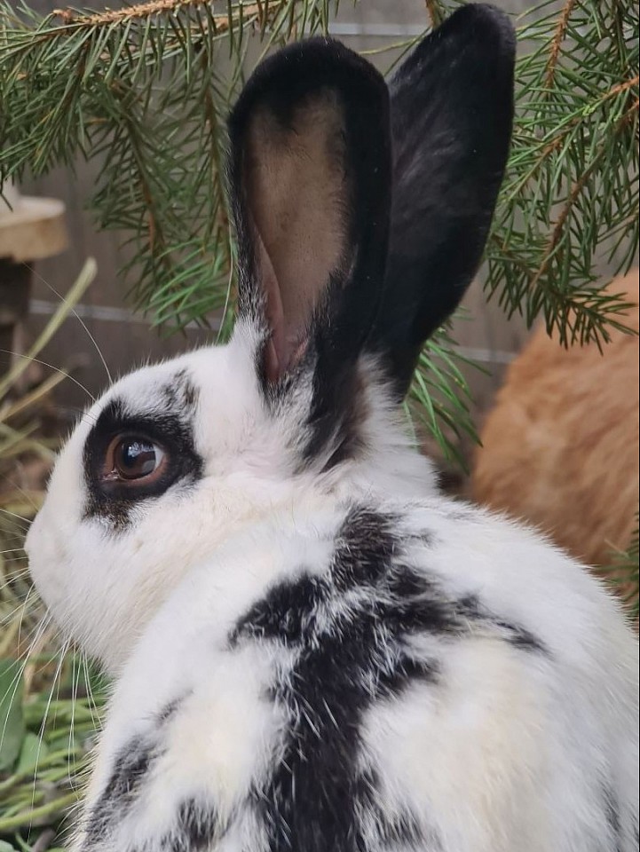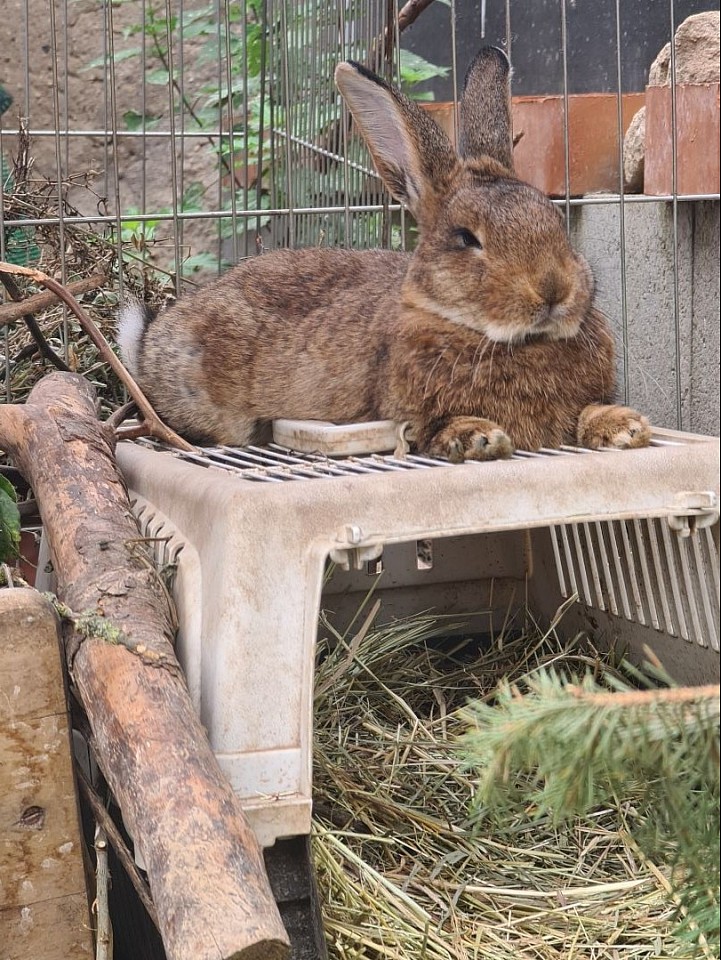 Ehem. Stall/Schlachtkaninchen, freiheitsliebend, er ist elfenhaft, anhänglich und schlau, bewegt sich wie ein starkes Pferd... will unbedingt unter dem Küchentisch wohnen... wird eingerichtet.