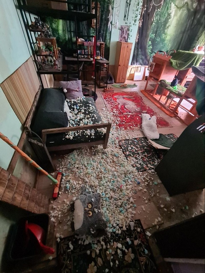 Melde zerstörtes Sofakissen